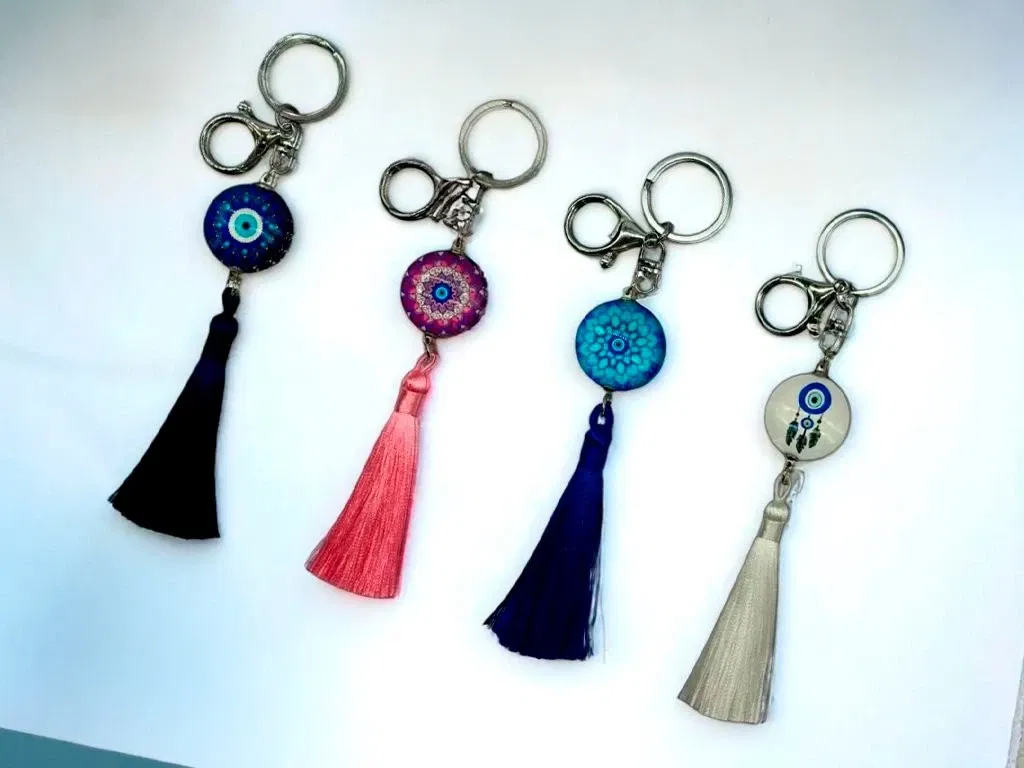 Llaveros metal ojo turco con fleco