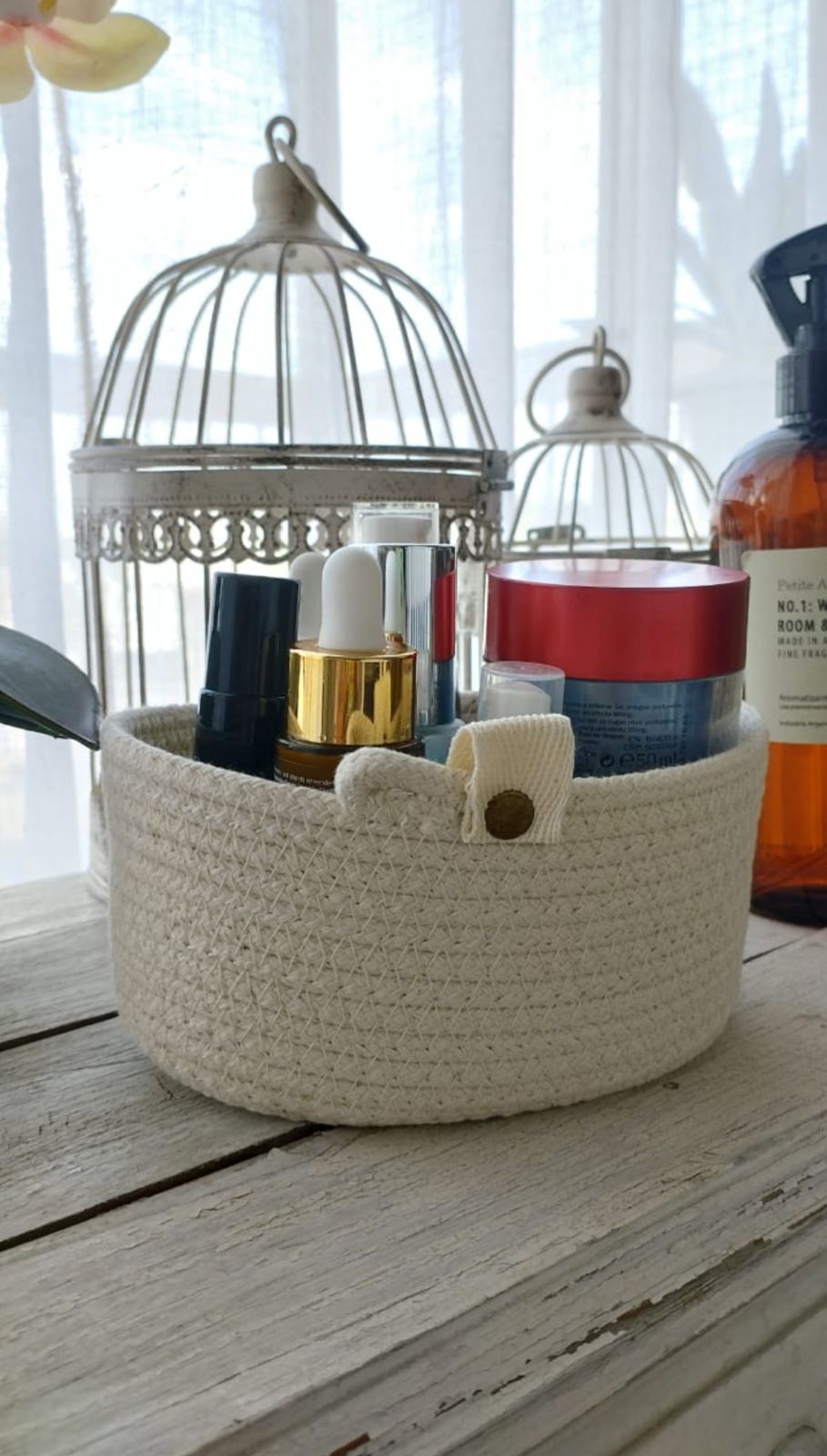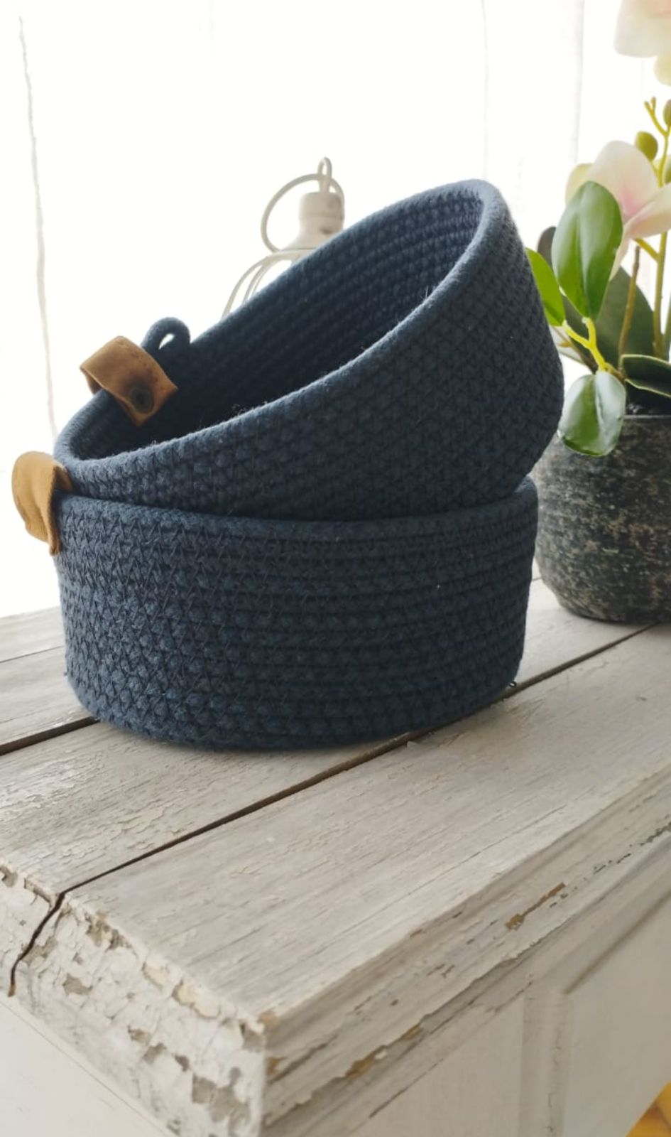 Canasto de algodon de 11 x15 cm de diametro y 10 cm de alto.