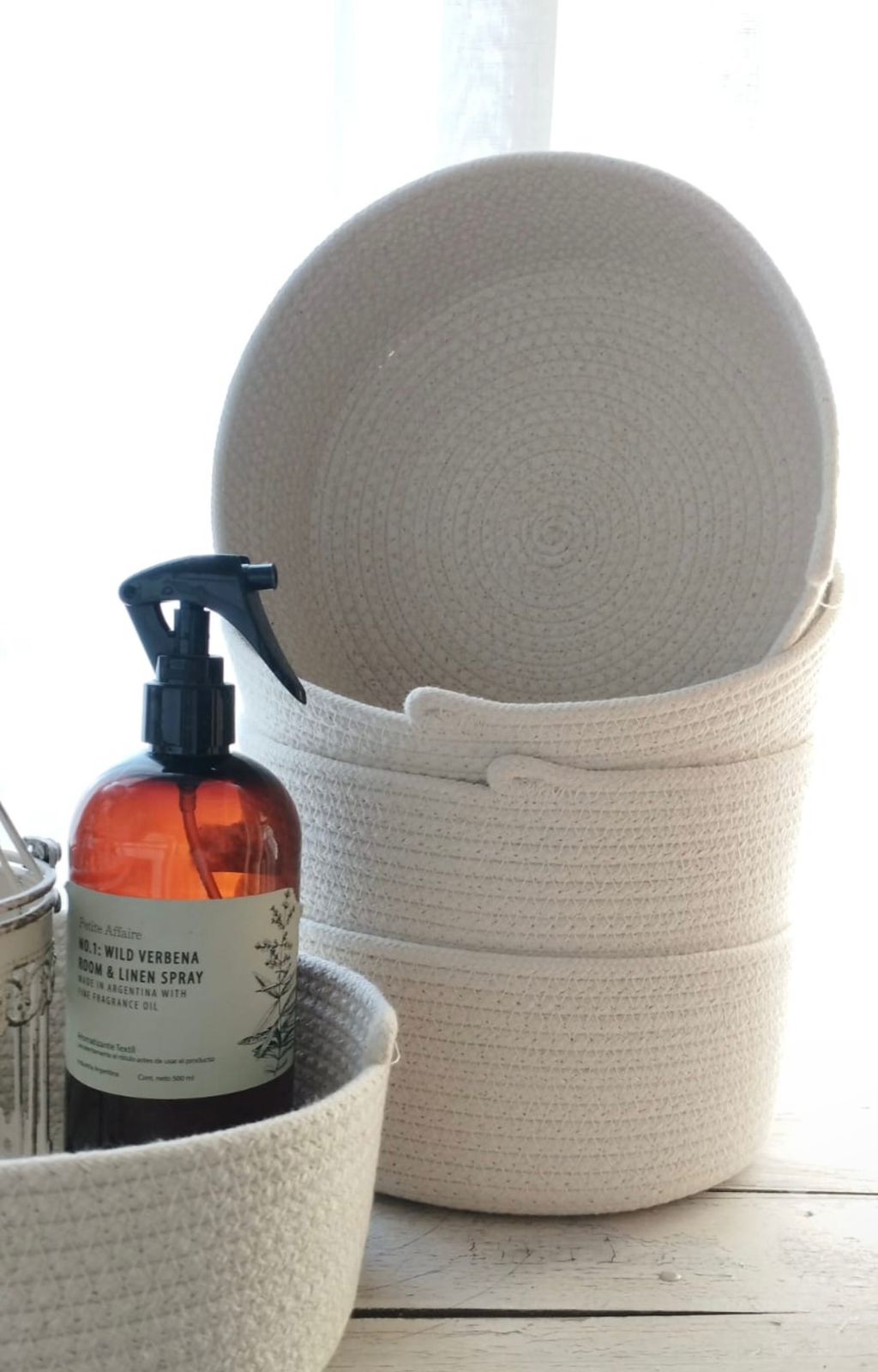 Canasto de cordon de algodon de 22 cm de diametro x 10 cm de alto