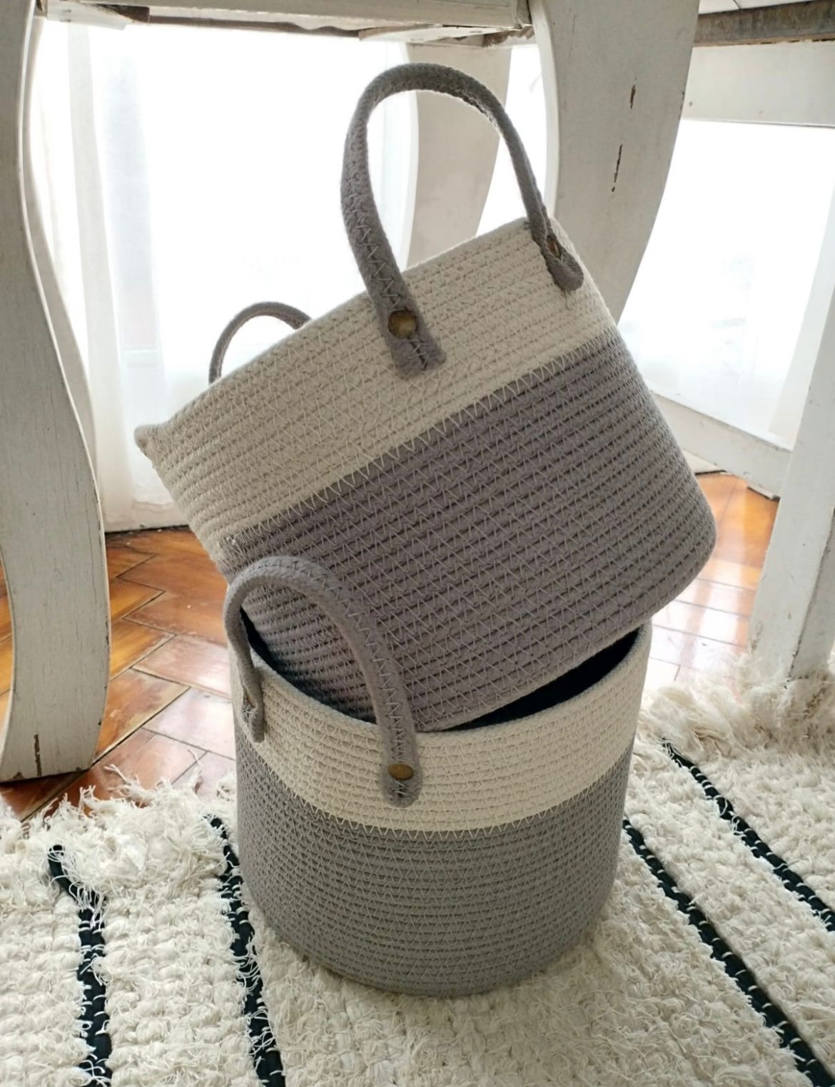Canasto de cordon combinado 22 cm de daiemtro x 16 de alto. Varios tonos