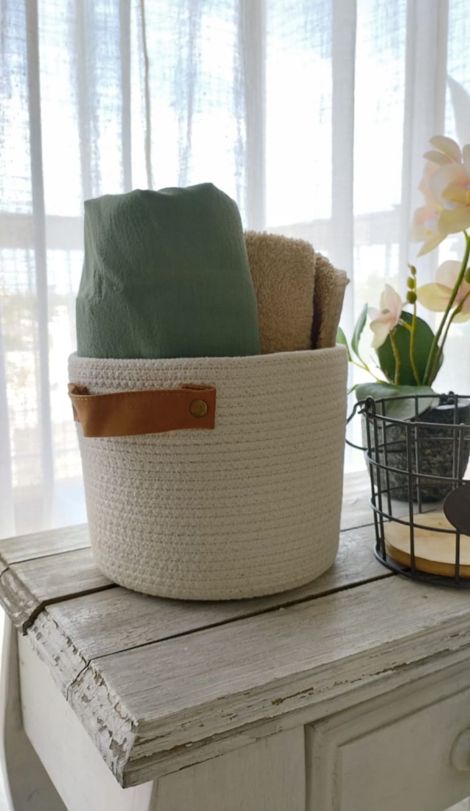 Canasto de algodon de 19 cm de diametro x 15 cm de alto