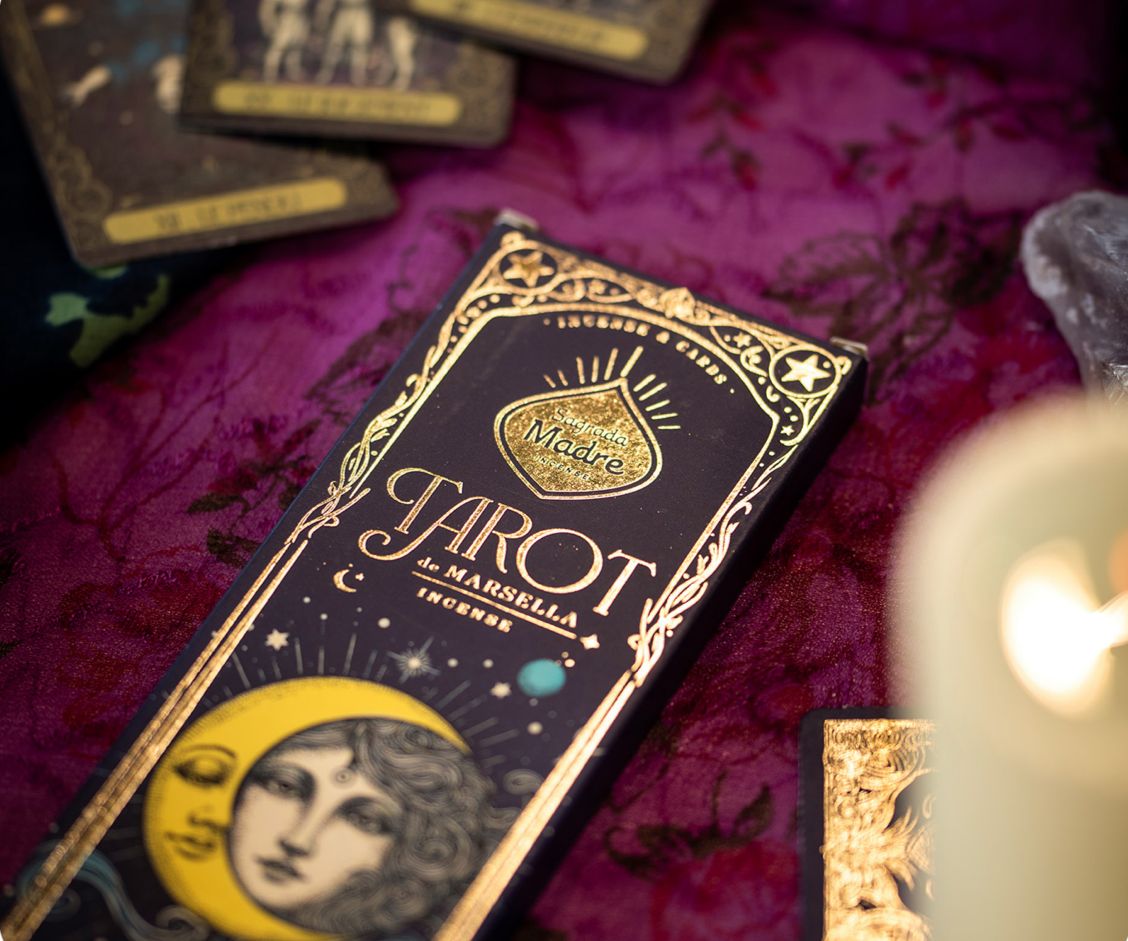 Edición coleccionable de inciensos aromáticos de la línea Tarot de Marsella. Cada caja incluye un aroma exclusivo y 2 cartas troqueladas al azar, de los 22 arcanos mayores del Tarot.
