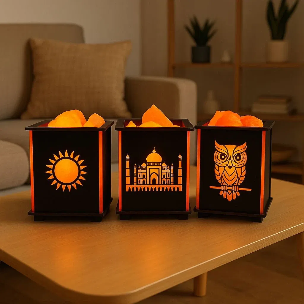 Lampara de sal MDF cuadrada
